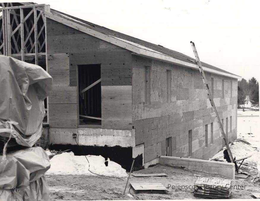 A B/W photograph of the construction of the United Methodist Church on Church Road. Undated