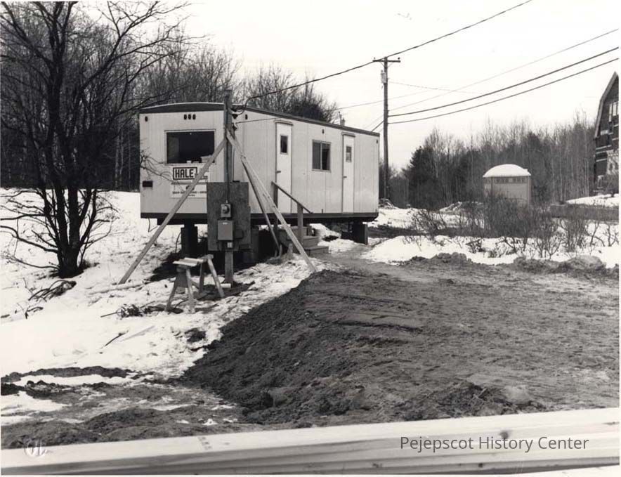 A photo of the construction office at the new United Methodist Church construction site on Church Road. Undated