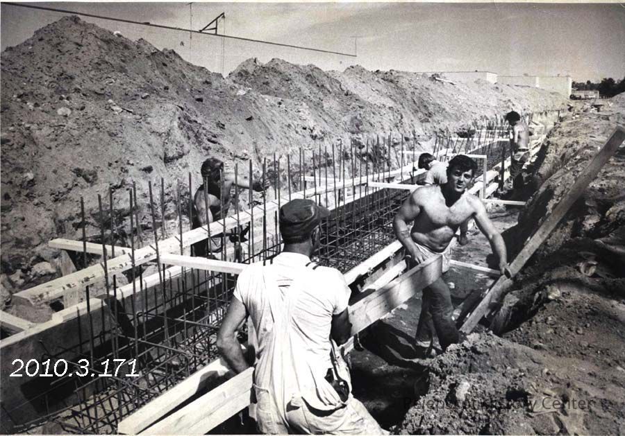 A B/W photograph of the construction of an addition to the Cook's Corner Mall. Photo published 6/2/1971. Undated
