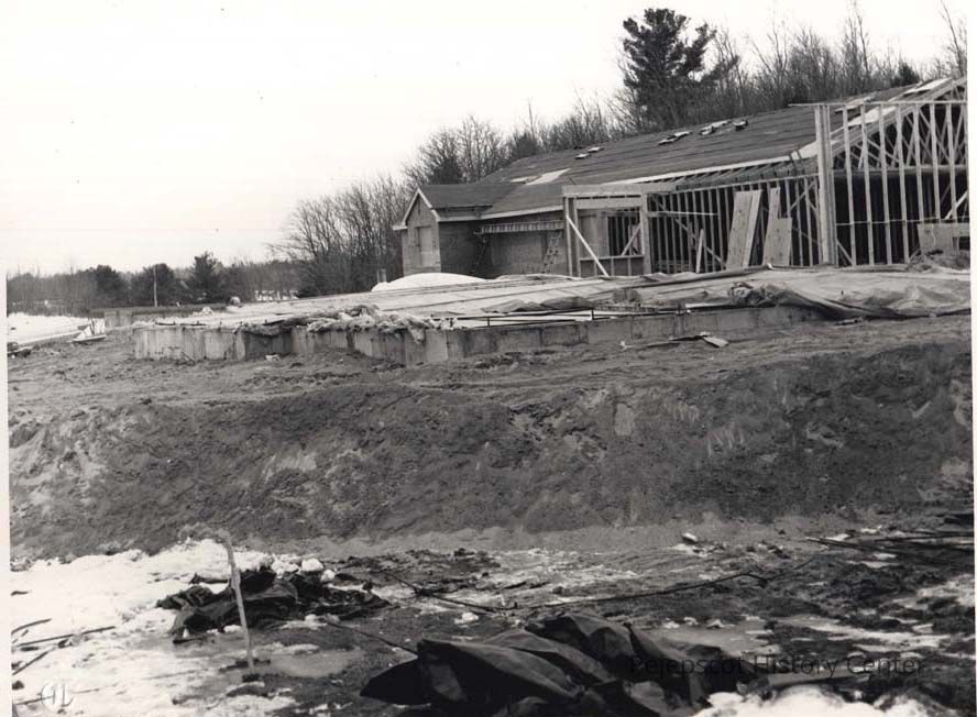 A B/W photograph of the construction site for the new United Methodist Church on Church Road. Undated