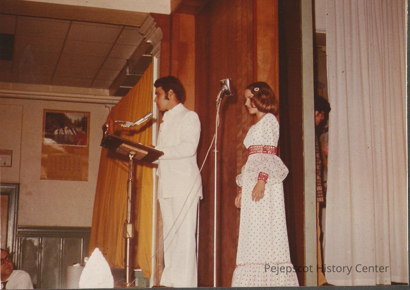Contestant #1 Berna Menard answering her question "How would you compare the family life in Equador as to family life in this Country? as one of the finalist.Collection