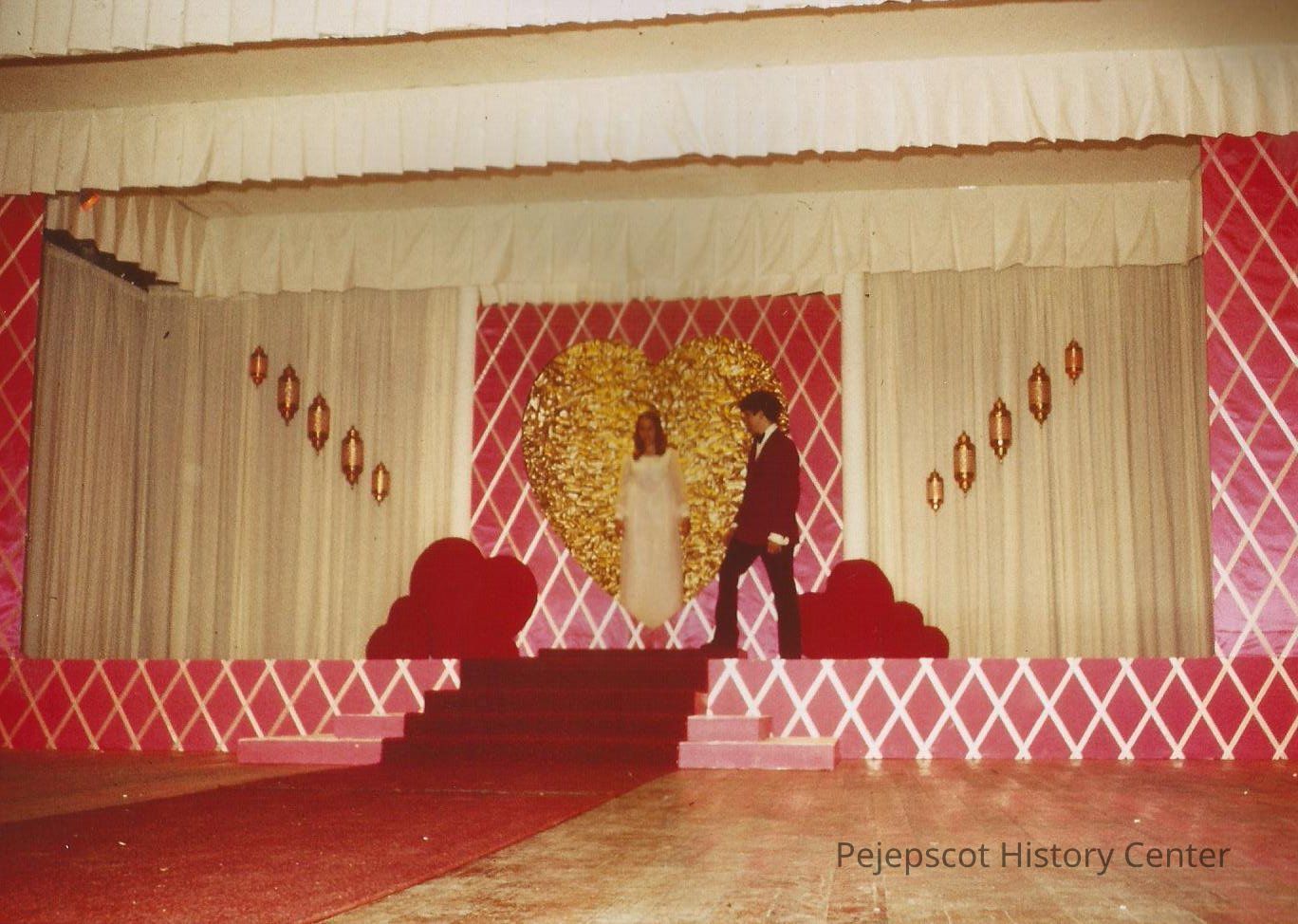 Contestant # 1 Bernadette Menard coming out of the heart escourted by Bob Cloutier.Collection