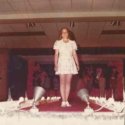 Contestant #1 Brnadette Menard is 4' 10" tall has dirty blond hair with blue green eyes, Berna's favorite subjects in school are French and English. She has several hobbies such as collecting Avon bottles, collecting pennants and likes to cook.Collection