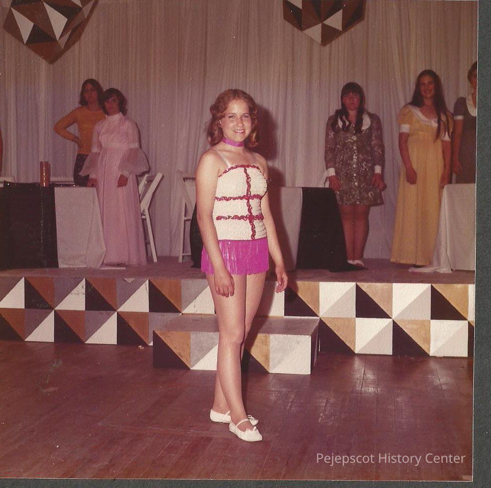 Contestant #1 Bernadette Menard possing in her talent costume.Entry/Object ID