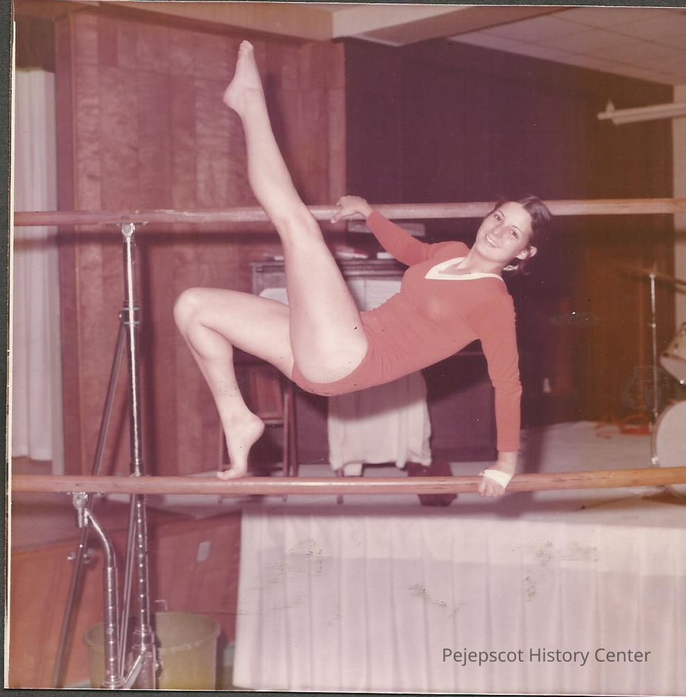 Contestant #3 Althea Kinney practicing her uneven parallel bar routine to the tune of "Foul On The Hill".Collection
