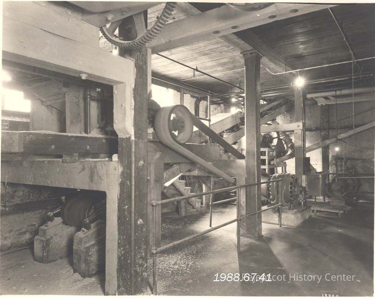 B/W photograph of conveyors at Lisbon Falls Mill.