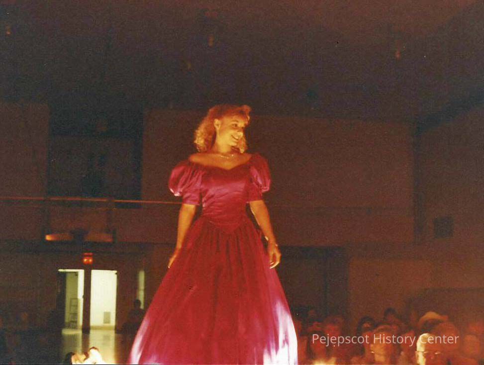 A color photograph of Corrie Pottle taking her walk down the ramp. Photographer's # 4-20 CYO sponsored