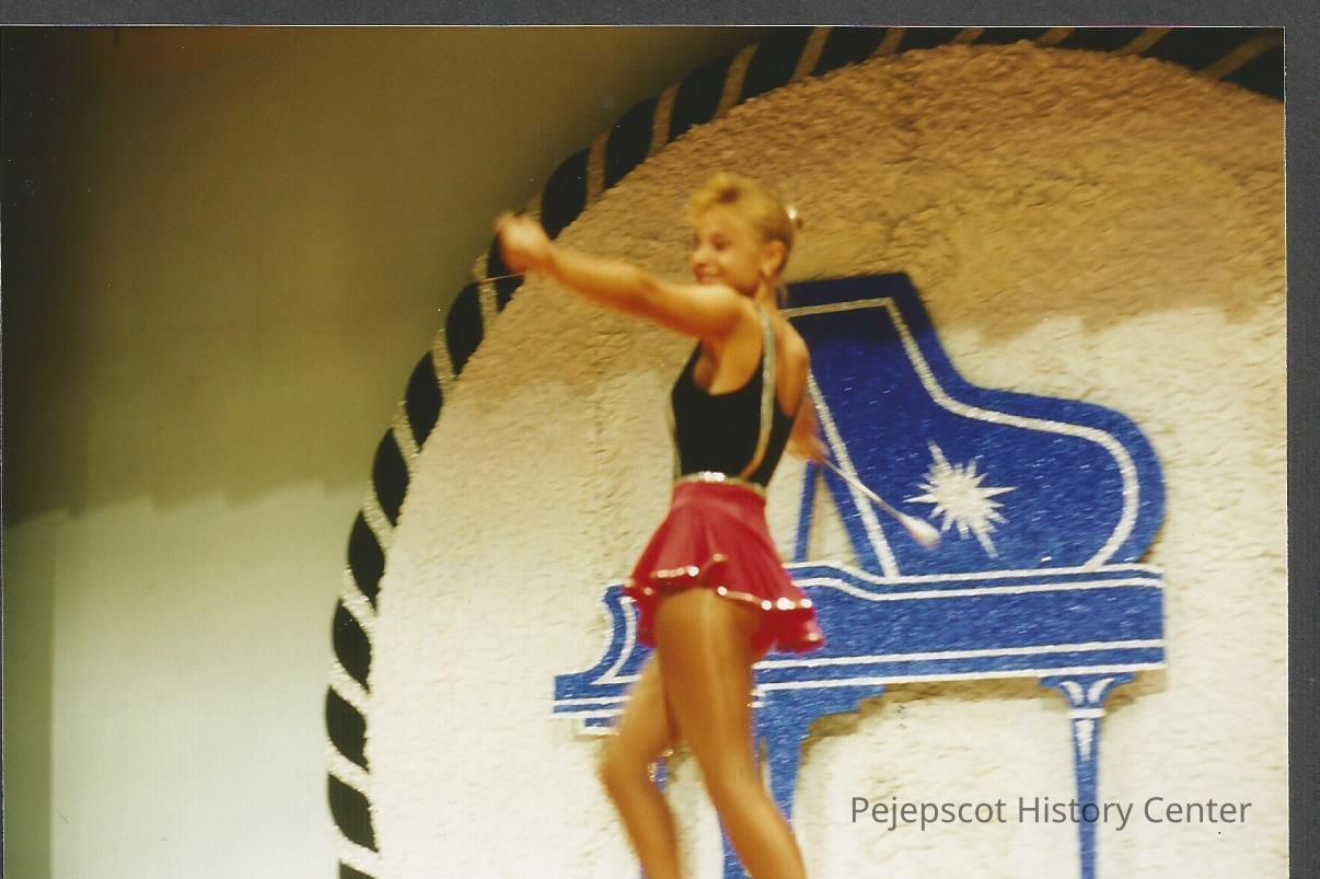 A color photograph of Corrie Pottle dancing/twirling to "Yankee Doodle Dandy""Give my regards to Broadway""Your a grand old flag'