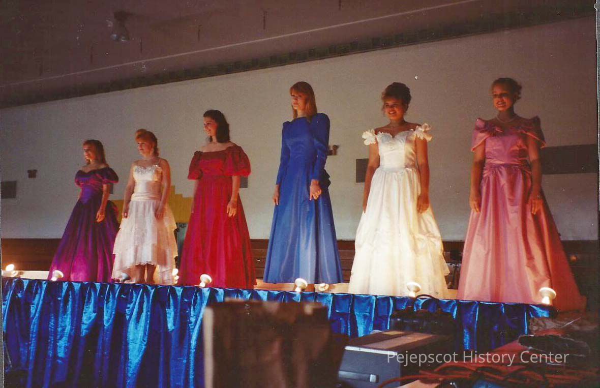 A color photograph of Corrie Pottle, Denise Mathison, Cara, Kristen Stevens, Courtney Garrison, Darby Labbe doing quater turns.