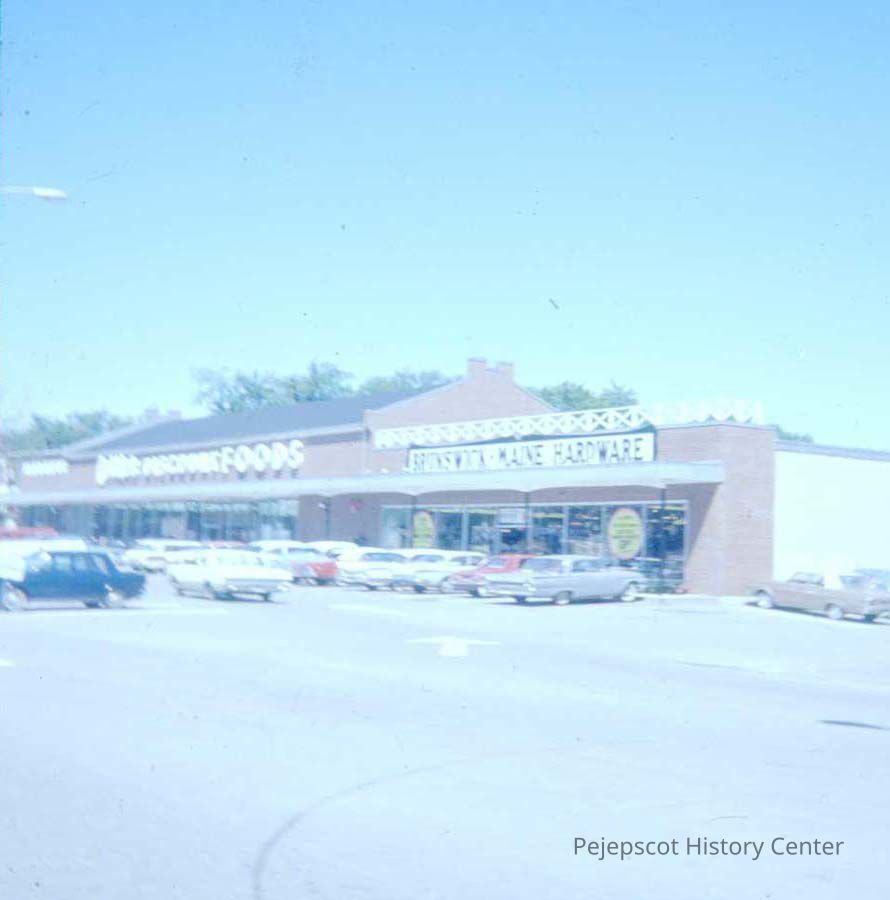 A color 35 mm slide of Cottle's Food Store and Brunswick Hardware Store. 1966