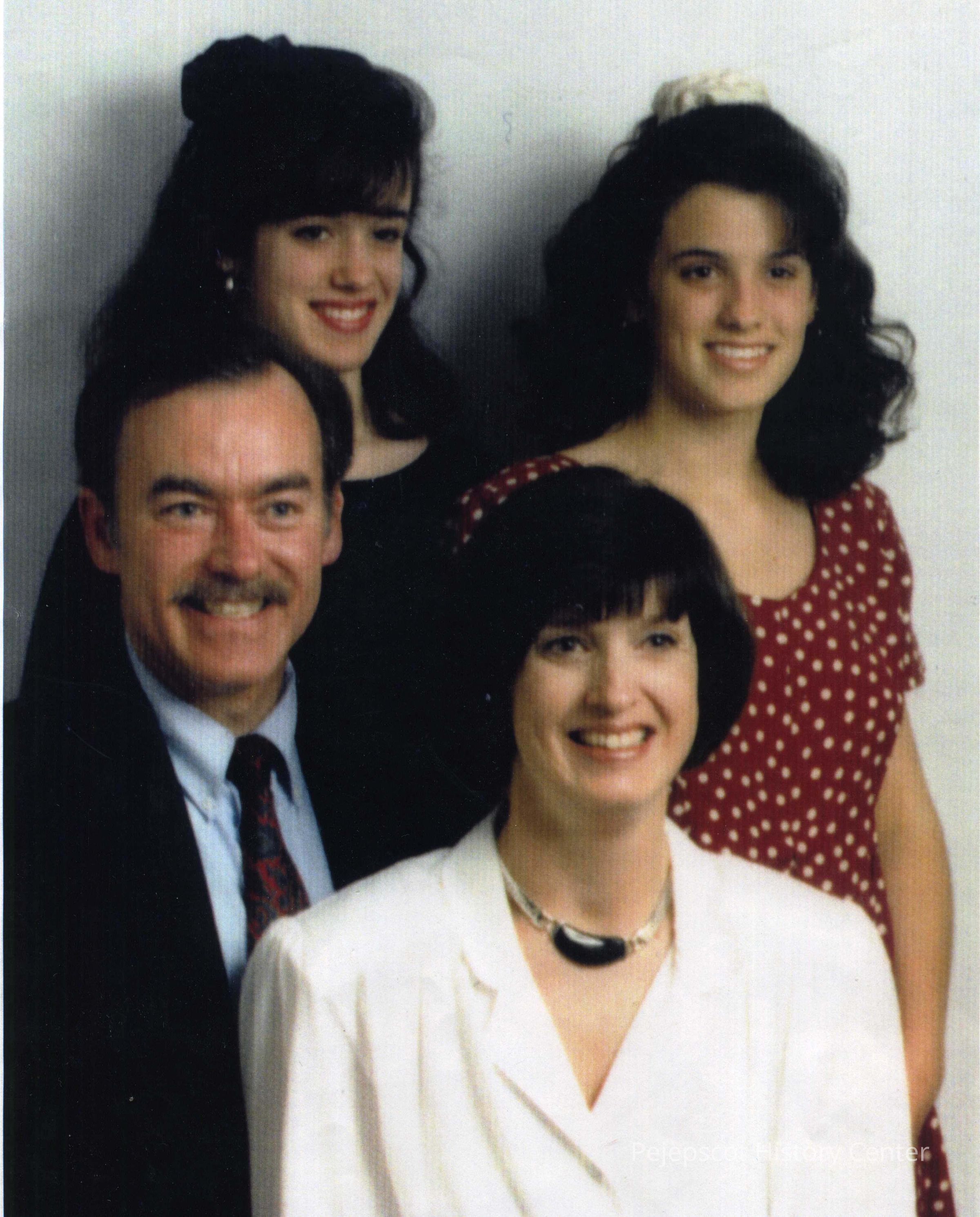 Color photo of the Courson family: Wayne & Susan Courson, Wendy (19) and Shelby (16). 1995.