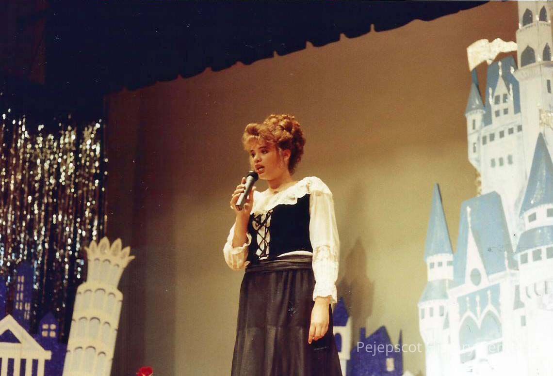 A color photograph of Courtney Garrison singing. Photographer's # 3-15 CYO sponsored