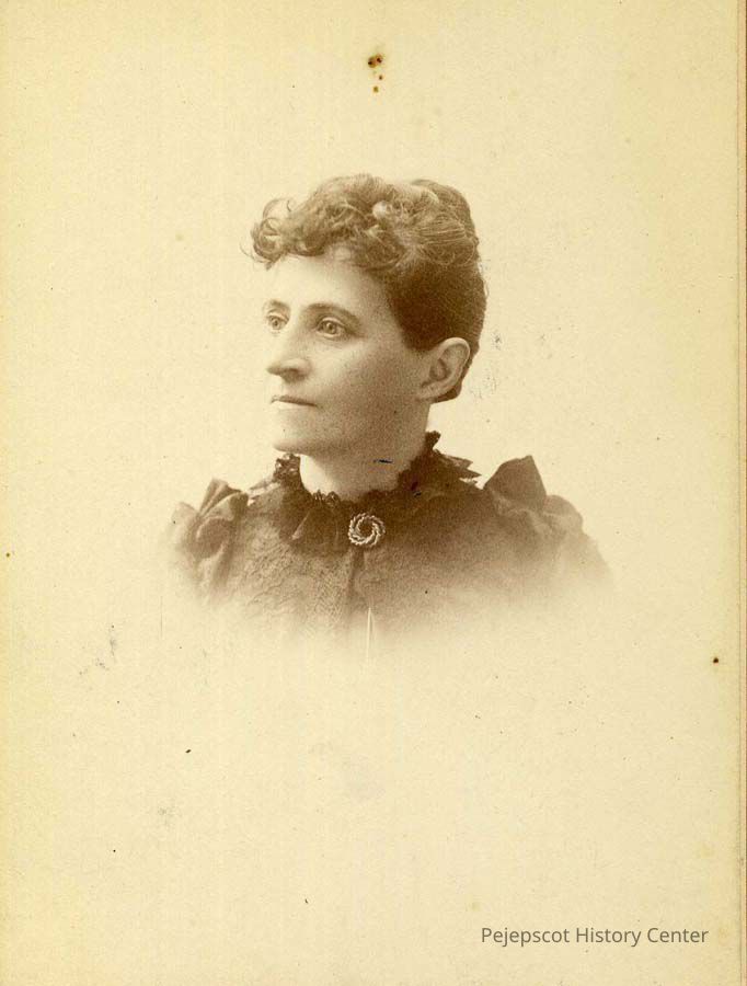 A sepia-toned photo of Adaline Morrison Crawford. Adaline was George Ward Crawford’s (b. 1846) wife and Kate "Kittie" Georgia Crawford's mother. Photo dated 03/1892, taken by G. B. Webber, Brunswick, ME.