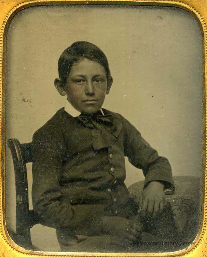 A hand-tinted sepia-toned photo of George Ward Crawford (9/1846-10/27/1870) in a metal frame. George married Adaline Morrison Crawford, and was the father of Kate "Kittie" Georgia Crawford (b. 2/10/1869). Photo is undated.