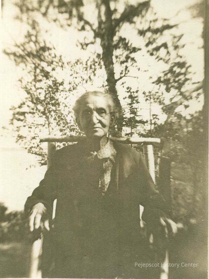 A sepia-toned photo of Mary Annie Crawford seated outside. Photo dated 1934.