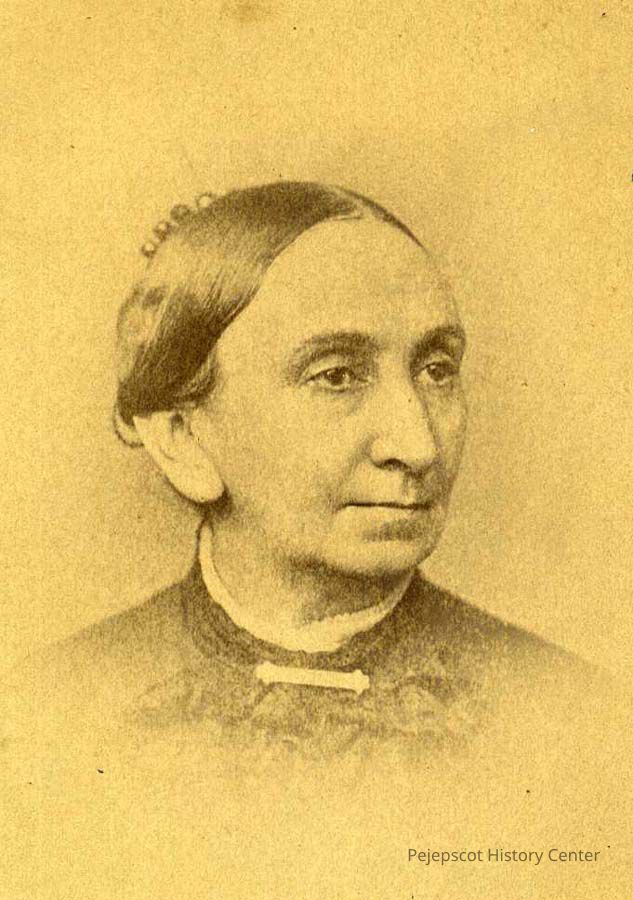 A sepia-toned photo of Sarah Ann Bonney Crawford (b. 1822). Sarah married John Crawford in Durham, ME on 9/4/1842. She was George Ward Crawford's (b. 1846) mother. Photo was taken in Portland, ME, dated 1886.