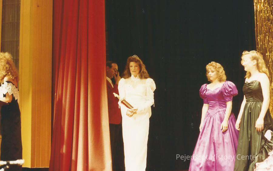 A color photograph of Crystal Hurd ready o present the trophy to first runner-up. Photographers number CYO sponsored