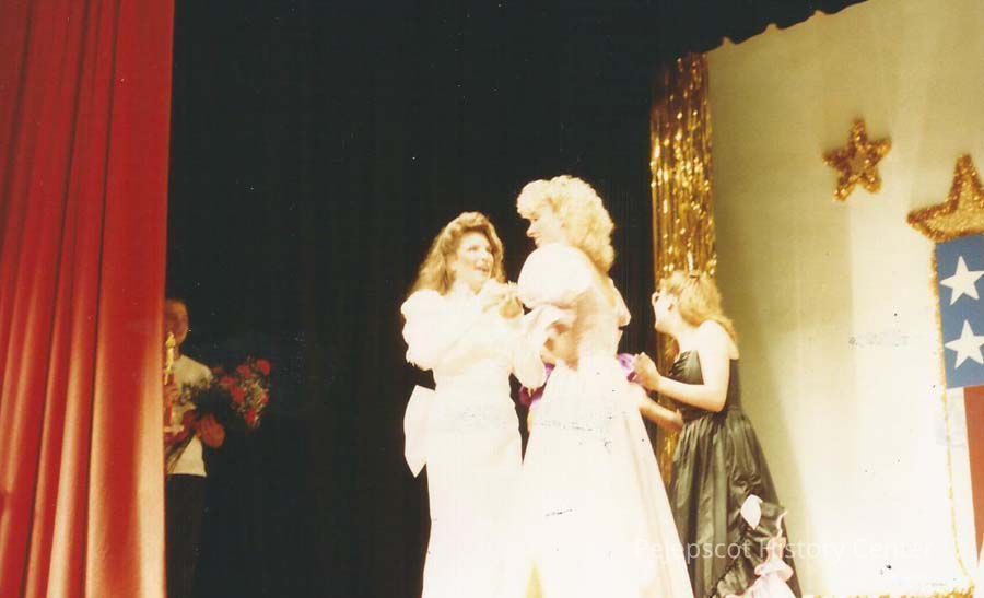 A color photograph of Crystal Hurd ready to crown Robin Moody. Photographers number 4-4 CYO sponsored
