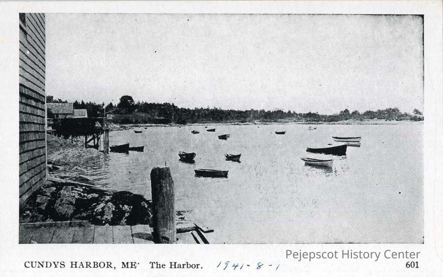 A black and white postcard of Cundy's Harbor, ME. Dated August 1, 1941.