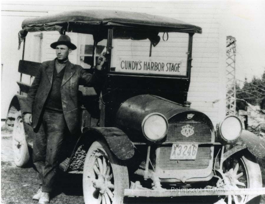 An undated black and white photograph of the Cundy's Harbor Stage.