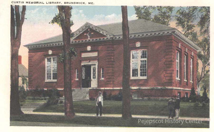 Postcard view of Curtis Memorial Library, Brunswick, Maine. Date unknown.