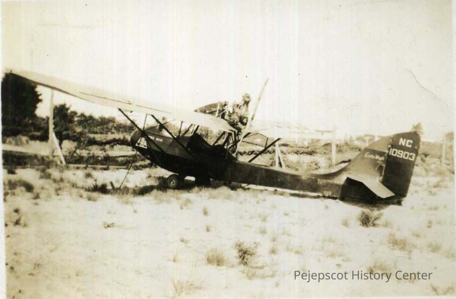 A B/W photograph of a Curtiss-Wright Jr plane which landed at Brunswick in1938.