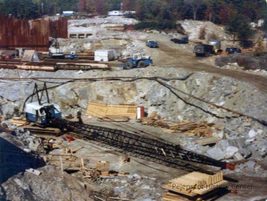A color photo of the new dam construction. Undated