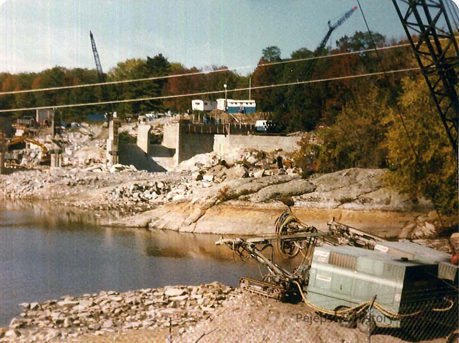 A color photo of the construction of the big gates of the new dam on the Topsham side. Undated