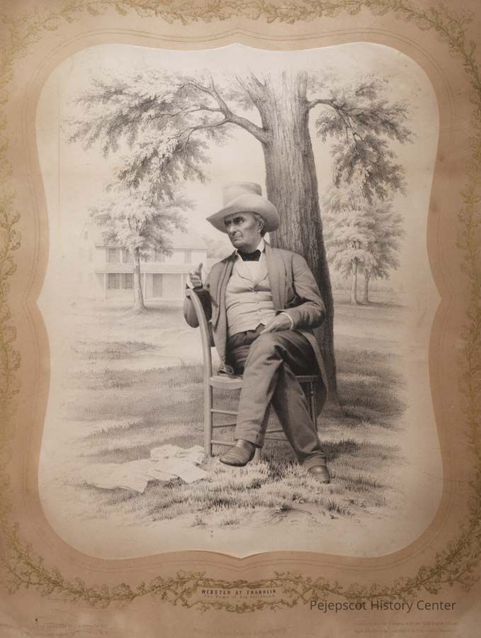 A B/W photograph of an engraving of Daniel Webster at his home in Franklin, Massachusetts.