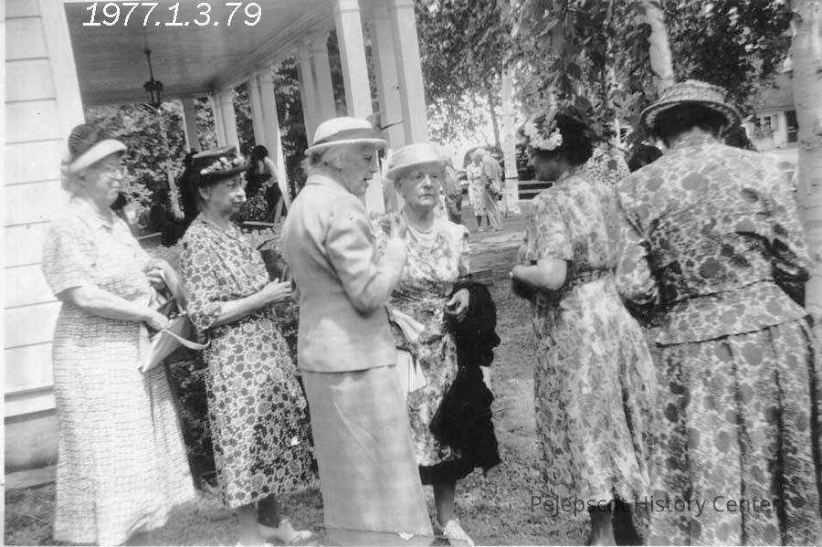 A B/W photograph of a group of DAR women. One of them is Miss Stetson a teacher. Undated