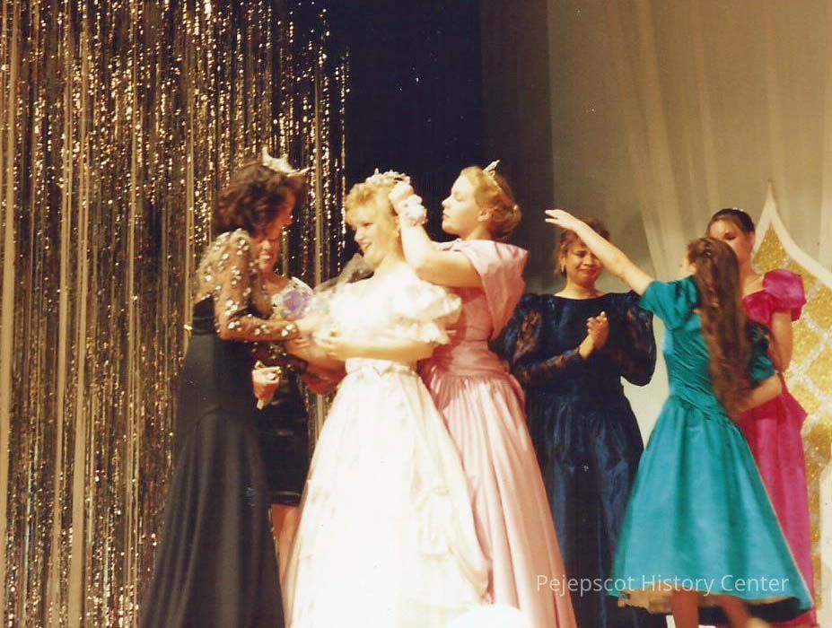 A color photograph of Darby Labbe being crowned while Katherine Albano is presenting her with flowers.