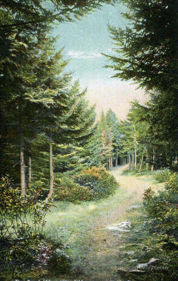 A colored picture postcard of The "Dark Way", West Harpswell, Maine.Collection