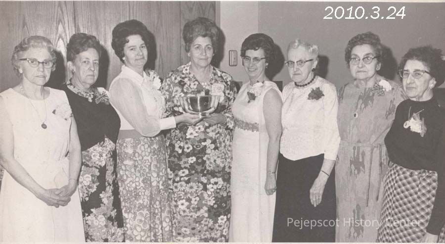 A B/W photograph of Brunswick Daughters of Isabella banquet. Third woman from the left is Juliette Dionne. Undated