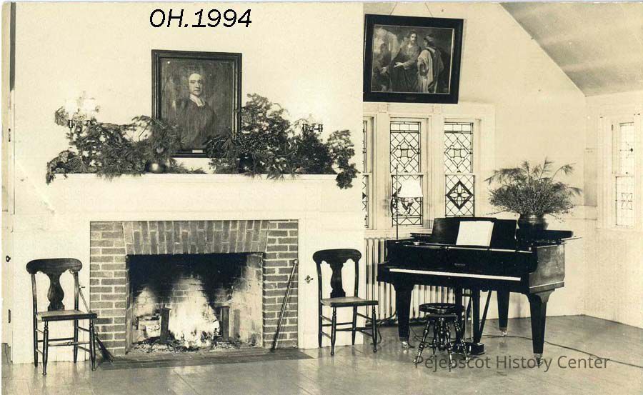 DEACCESSIONED A B/W photograph of the interior of the First Parish Church parish house, Brunswick, ME. Not dated.