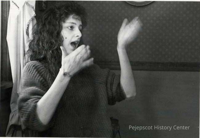 An undated black and white photo of Debbie Anderson, a deaf student at Mt Ararat School in Topsham, Maine.