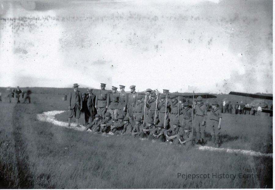 A B/W photo of Army officers and Boy Scouts at the dedication of Brunswick Aviation Field. 6/12/1922