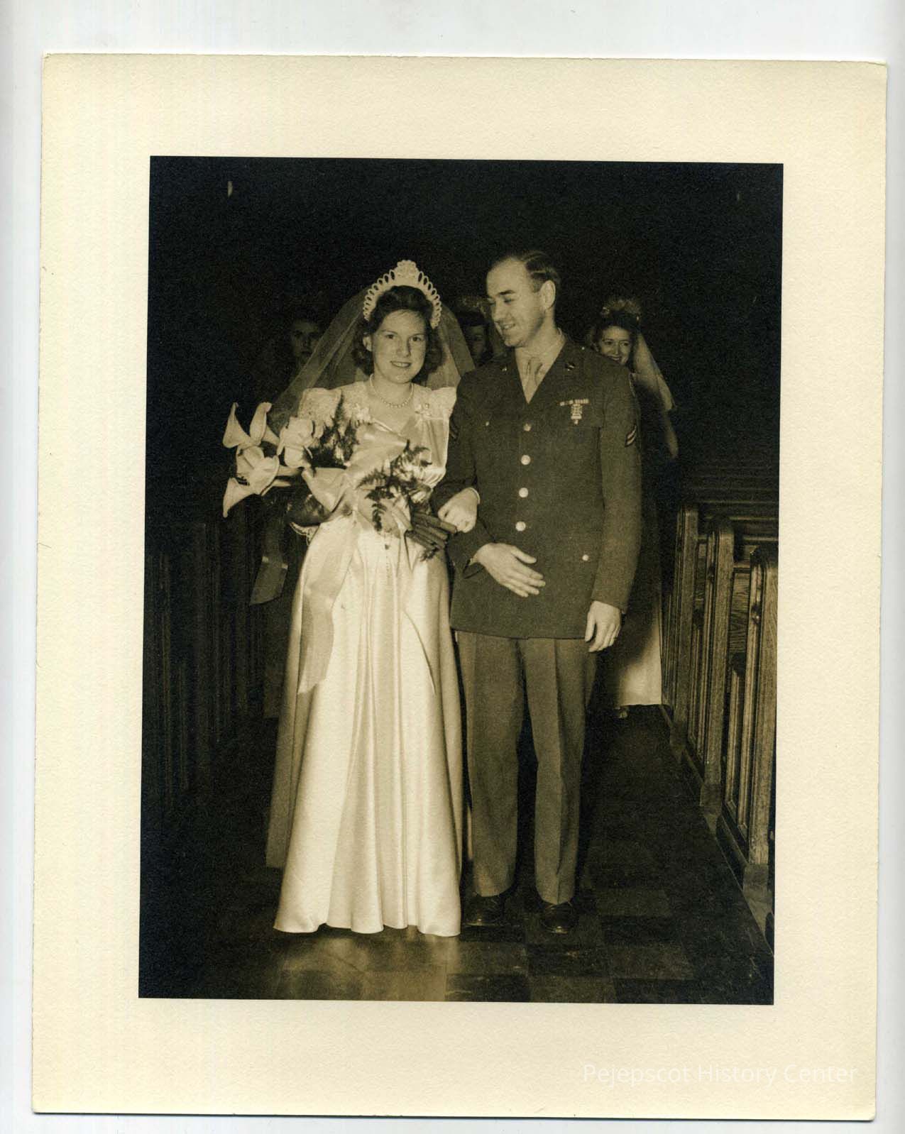 Rita Helene Derocher and Wilfred Henry Gerard at their wedding in St. John's Church. 01/07/1944