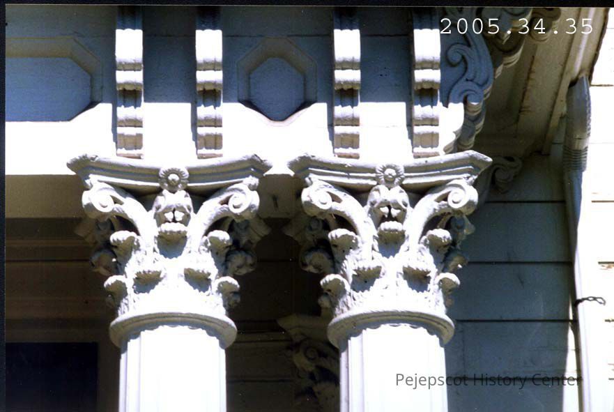 A color photograph of the columns at the entrance to the house at 85 Federal Street.