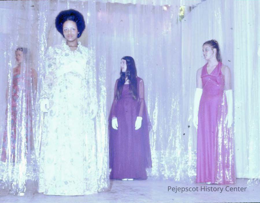 A 35 mm color slide of contestants in the 1973 Miss Teen Queen Pageant. Left to right: Althea Kinney, Diana Johnson, Gale Cowley and Kathy Livernois. The slide is marked, "11" and in red ink, "1-79." UndatedCollection
