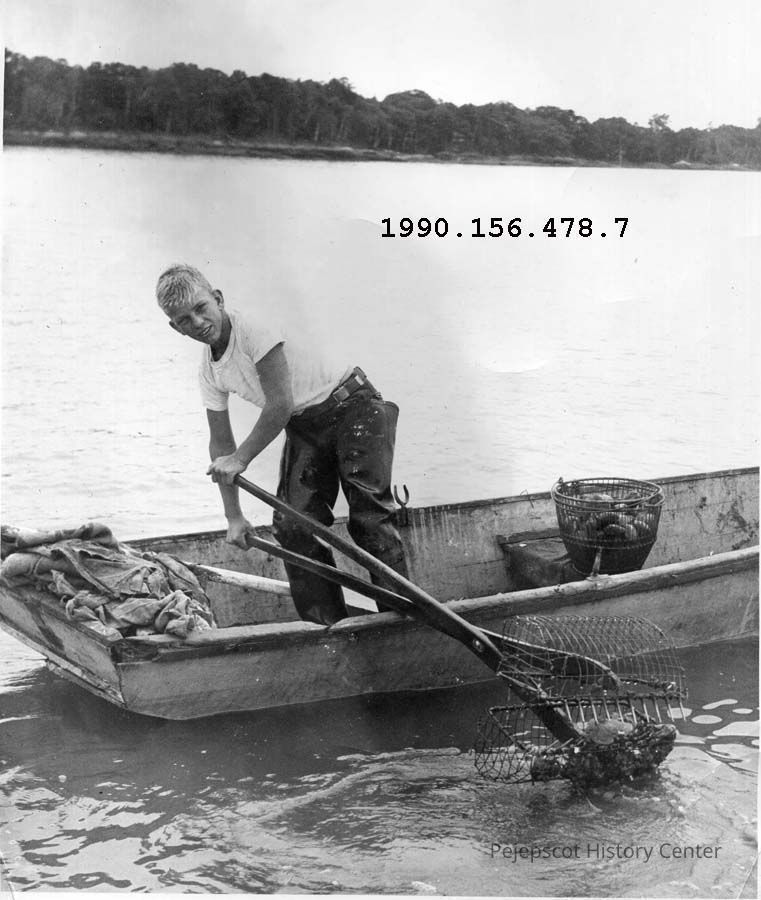 A B/W photograph of digging quahogs to be moved to barren areas. Undated