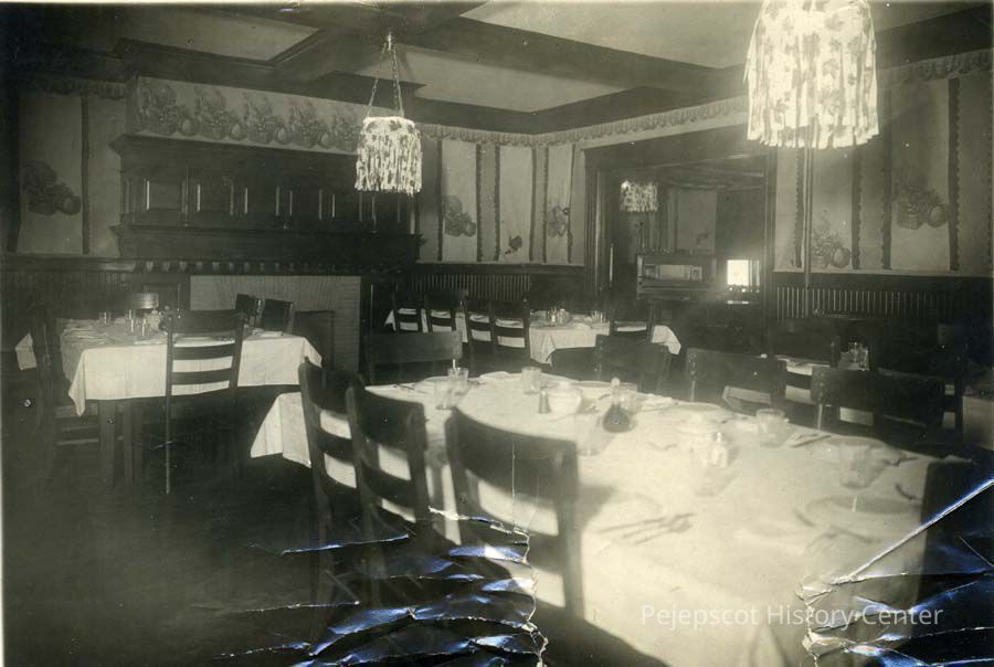 An undated black and white photograph of the dining room in the Hotel Eagle.