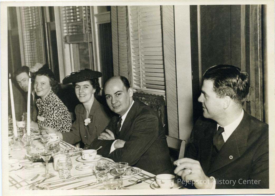 Sitting at a dinner table are Laval Livernois, Yvette Carlson Livernois, Ursula Beaulieu, Alphonse Beaulieu, and Leo Livernois. Undated