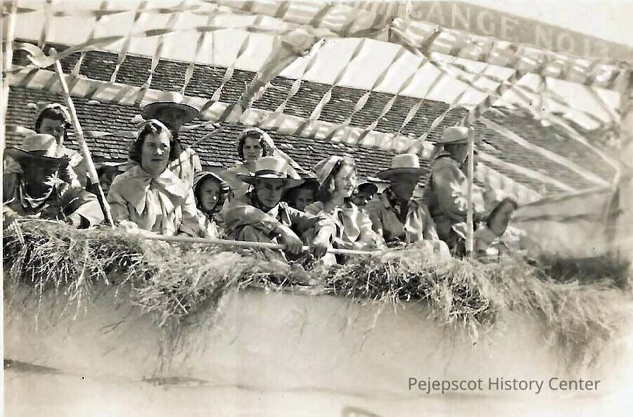 A B/W photograph of the Dirigo Grange float in the 1939 parade.