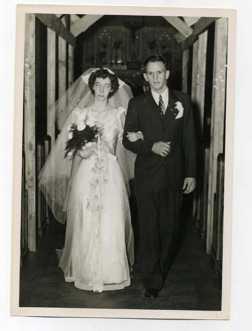 Bride and groom, Clemence Florida Dogenais and Dexter Lane John Rollins, at St John's Church. 02/16/1946