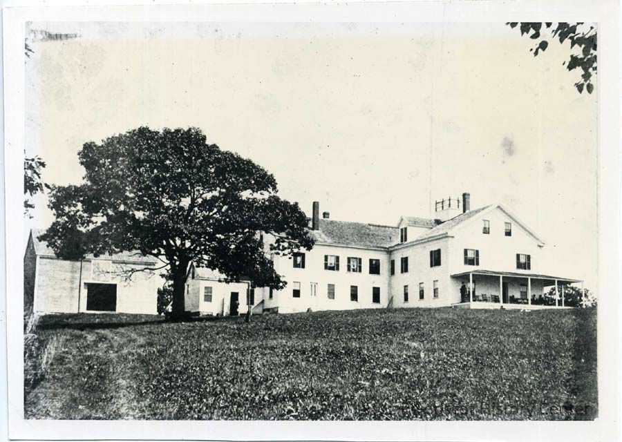 Black and white photo of Domhegan House at Simpson Point in Brunswick, Maine. Owned by Joshua Chamberlain as summer home.