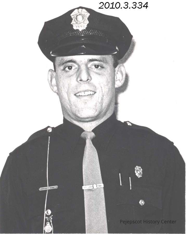 A B/W photograph of a Brunswick police officer, Dominique Vermette, who served during the 1970s. No clipping. Undated