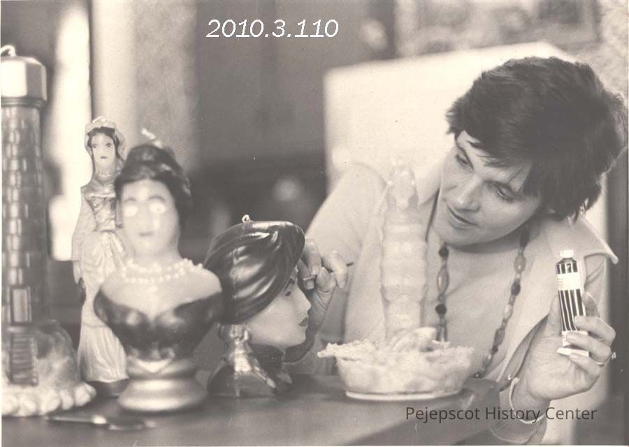 A B/W photograph of Donna Greenlaw, candle maker. Photo published 10/7/1976. Undated