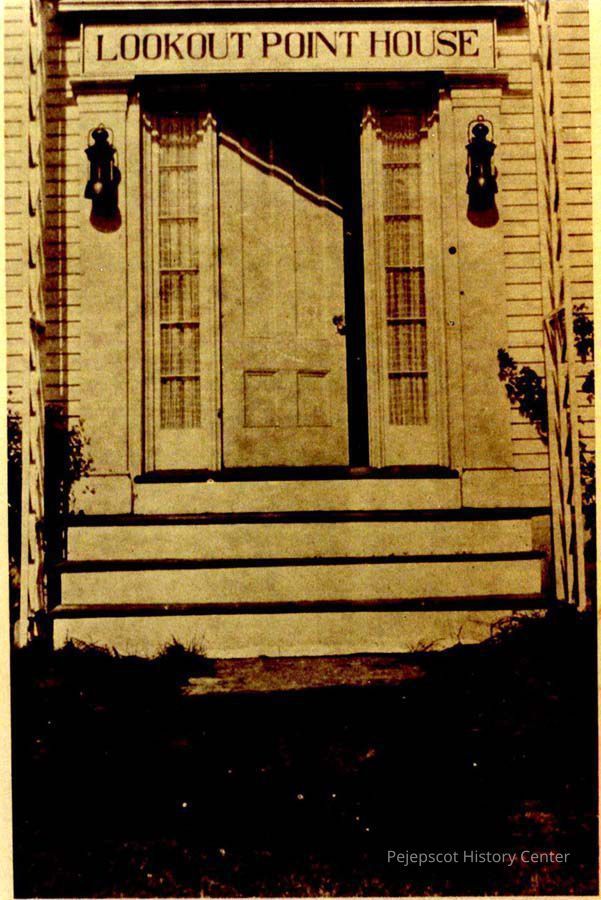 A color print copy of the doorway to the Lookout Point House. Note the ship lanterns on either side of the door. UndatedCollection