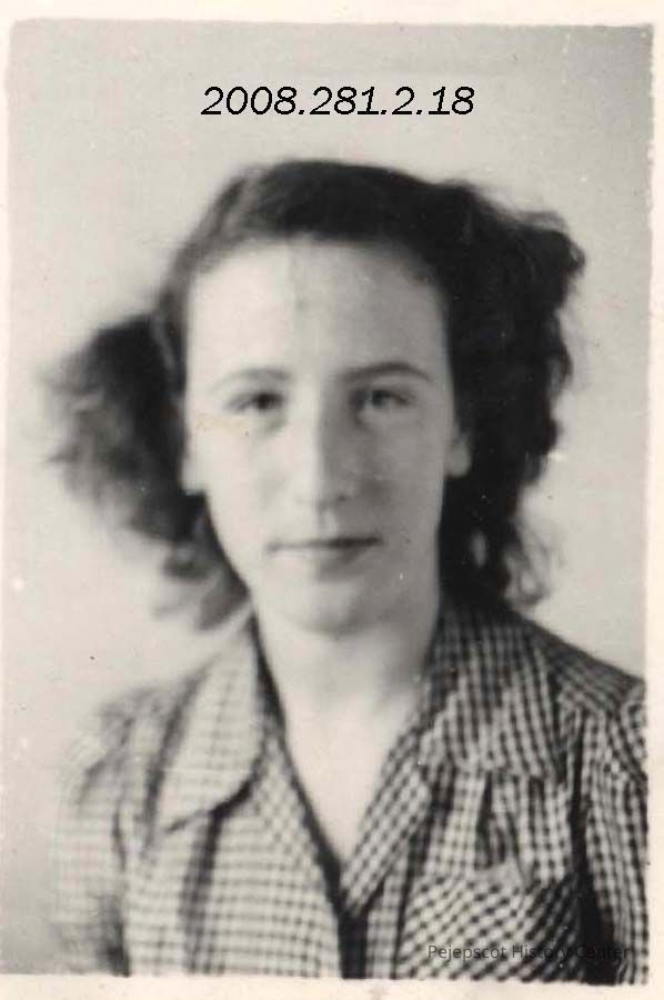 A small children's photo album with very small pictures of classmates in it. Class of 1949 (Growstown School?) This is a photo of Doris McKeernie. Undated
