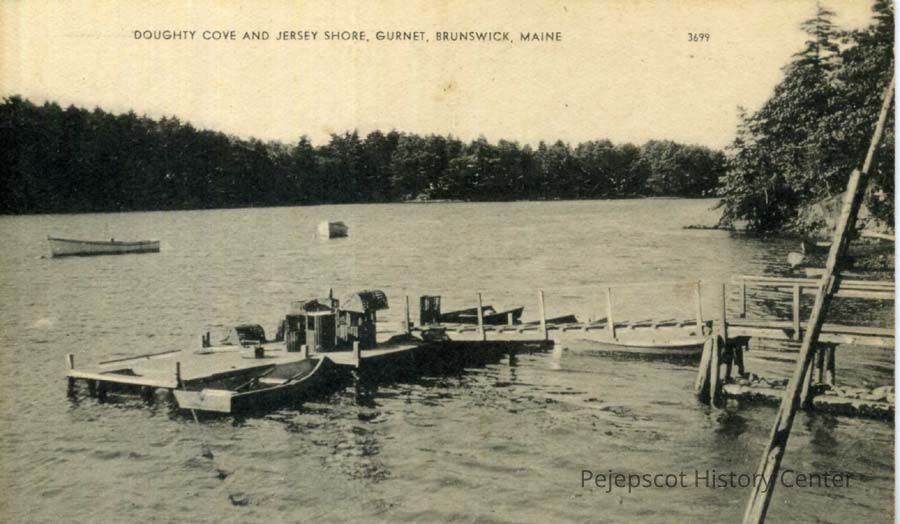 B/W postcard of "Doughty Cove and Jersey Shore, Gurnet, Brunswick, Maine". No date.Lexicon